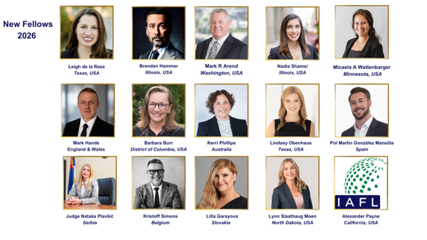 Leigh de la Reza (Texas, USA), Brendan Hammer (Illinois, USA), Mark R Arend (Washington, USA), Nadia Shamsi (Illinois, USA), Micaela A Wattenbarger (Minnesota, USA), Mark Hands (England & Wales), Barbara Burr (District of Columbia, USA), Kerri Phillips (Australia), Lindsey Obenhaus (Texas, USA), Pol Martín González Mansilla (Spain), Judge Nataša Plavšić (Serbia) Kristoff Simons (Belgium), Prof. Dr. Lilla Garayová (Slovakia), Lynn Slaathaug Moen (North Dakota, USA) and Alexander Payne (California, USA).